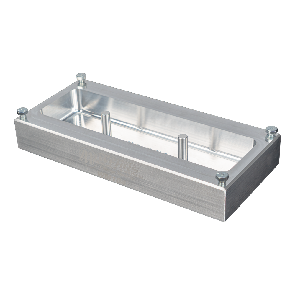 Molding lead the easy way. The NEW Ryan Rosenow inspired Rectangle Bar Lead Mold is designed to make a bar lead that bolts to your weight clamps. The mold has built-in taper to allow the mold to release once cooled.  BOLT SPACING IS 5″ ON CENTER.  The chunk of lead measures 12″ x 3-1/2″ x 1-1/2″ and weighs 25#.