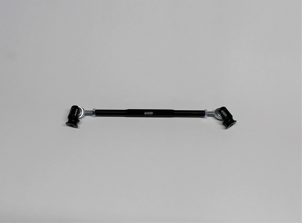 This is our 8″ long hex body brace with heims and machined clevis. The length measurement is center to center of the heims. The clevis is tapped 1/4″-20 to mount to your car.