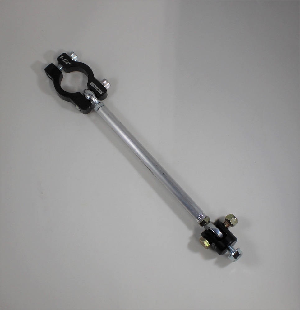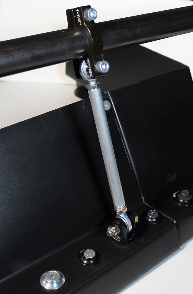 This is our new nose support kit that uses your bumper to keep your valance rigid. This one is our 8″ long kit for a 1-1/4″ bumper. Length measurement is the center to center of heims, subtract 1-3/4″ if you’re measuring from top of valance plastic to center of bumper tube. (Ex. If that measurement is 9″, you need a 7″ long kit.) The kit comes with the clamp for the bumper, support tube with heims, and the clevis with bolt to attach from under the valance.