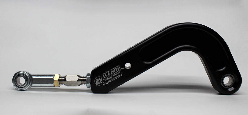 The Wehrs Machine original aluminum double adjustable J-bar. Superior in strength, adjustability, and versatility to any other brand on the market. Zero failures in 23 Years! Fits any chassis manufacturer. You can adjust the bar length 2″ without disconnecting from the frame. This is a 4” drop with adjustment from 17”-19”.