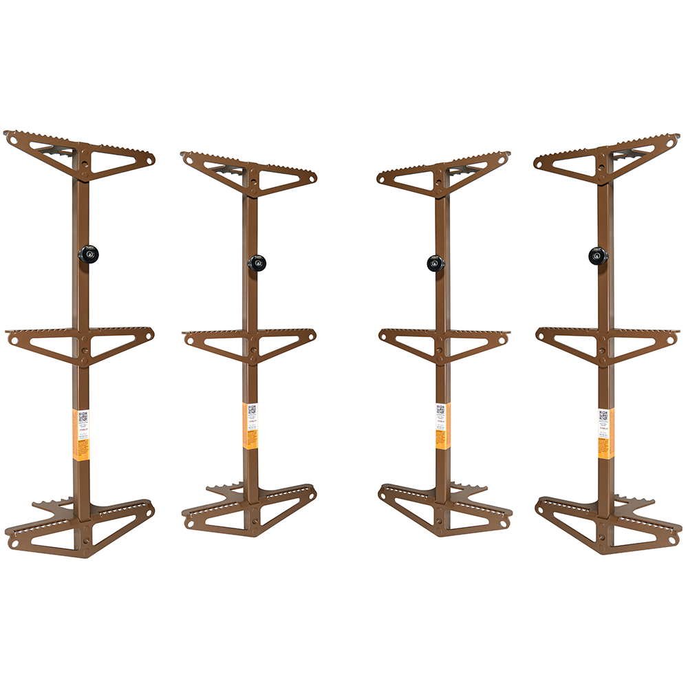 Our climbing sticks are made of welded steel for maximum safety and durability. They are laser-cut to eliminate any excess weight, making them the ultimate semi-permanent option. These climbing sticks are tested to withstand the weight of both the hunter and the necessary gear, so you can focus on the hunt without worrying about your equipment. They are equipped with deeply textured steps that provide you with a secure and slip-resistant grip, even in wet or