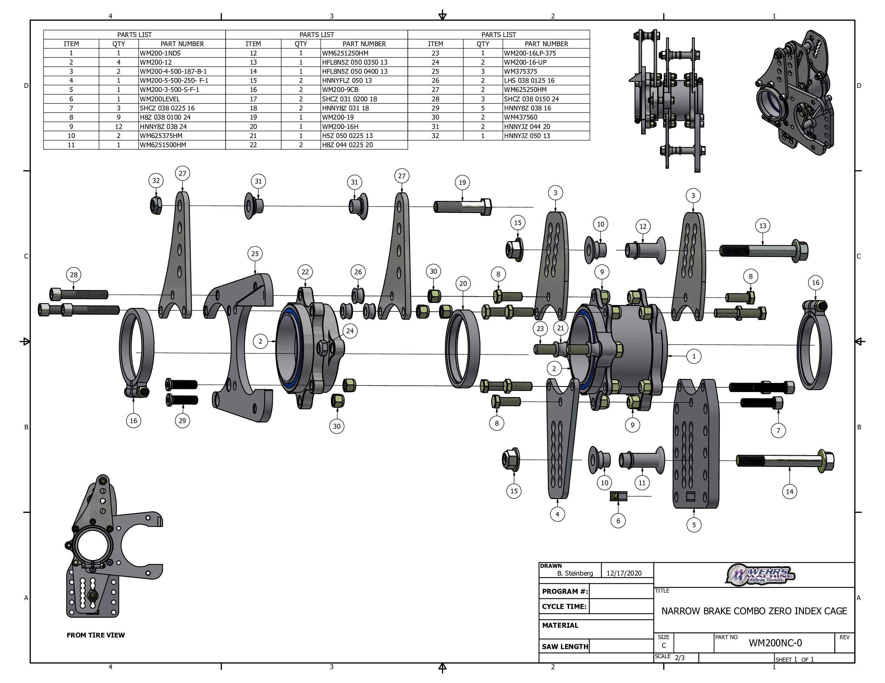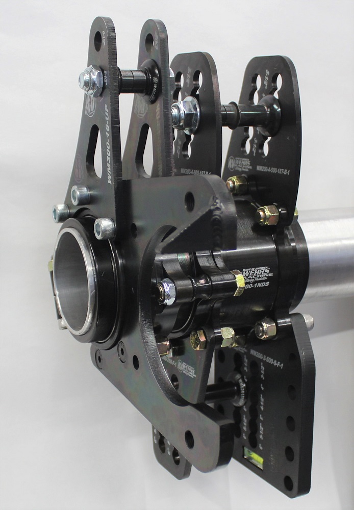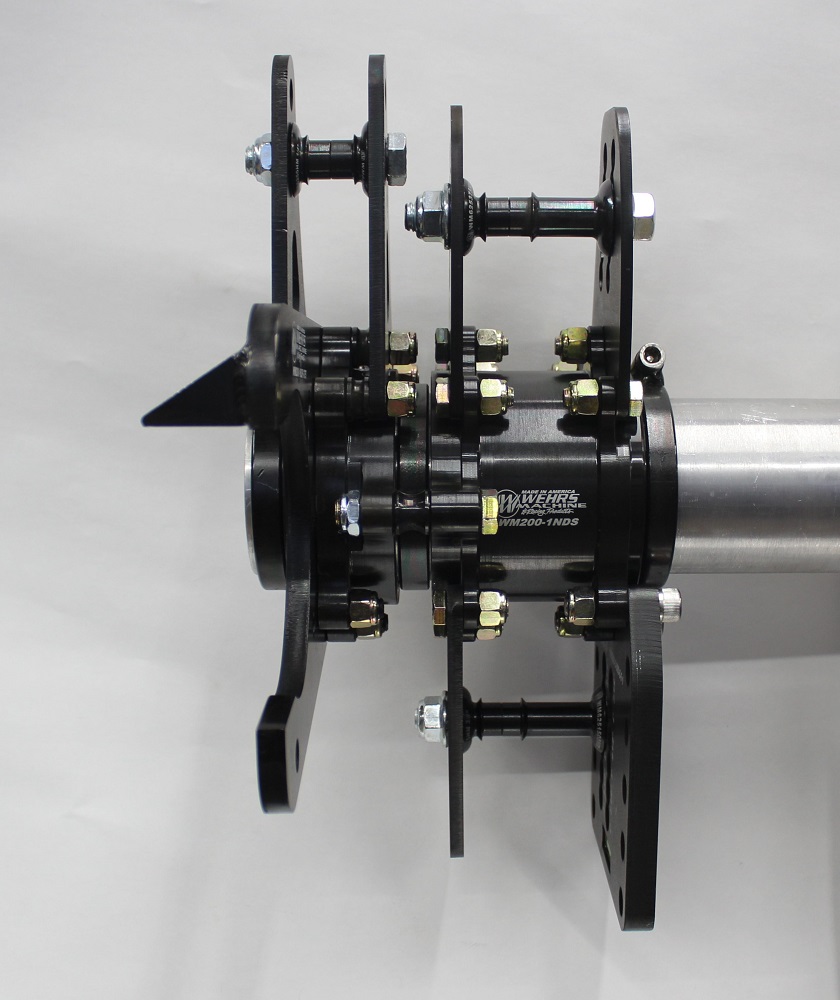 Our steel narrow brake combo suspension cage with zero index has the same two options as our standard combo, run the floater bar separate or lock the brake to the cage for a more aggressive transfer. This narrow version is 3-1/8″ from the inside of the caliper plate to the center of the 4-bar heim. Our spacer package has high mis-alignment built in for maximum travel. The cage has a built in level for quick reference on cage index.