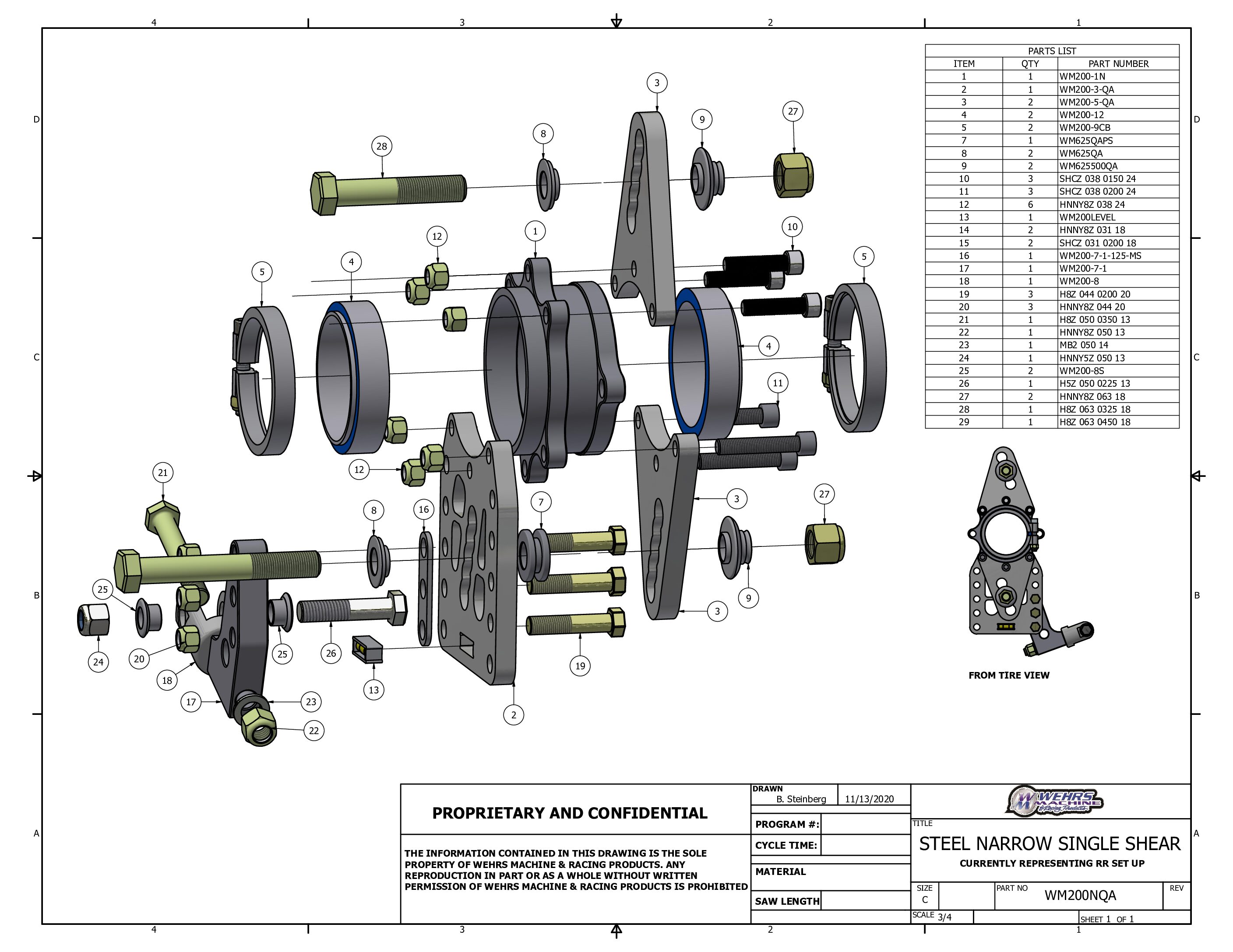 Our narrow steel single shear bearing suspension cage has a split plate design that allows you to change plates if you need to without removing the hub, brake, and cage. This cage comes with 4”, 5”, 6” and 7” shock drops. The 4-bar rods have 5 holes on the top and bottom to change indexing, with a 9” standard bar spacing. This cage works on LR or RR.