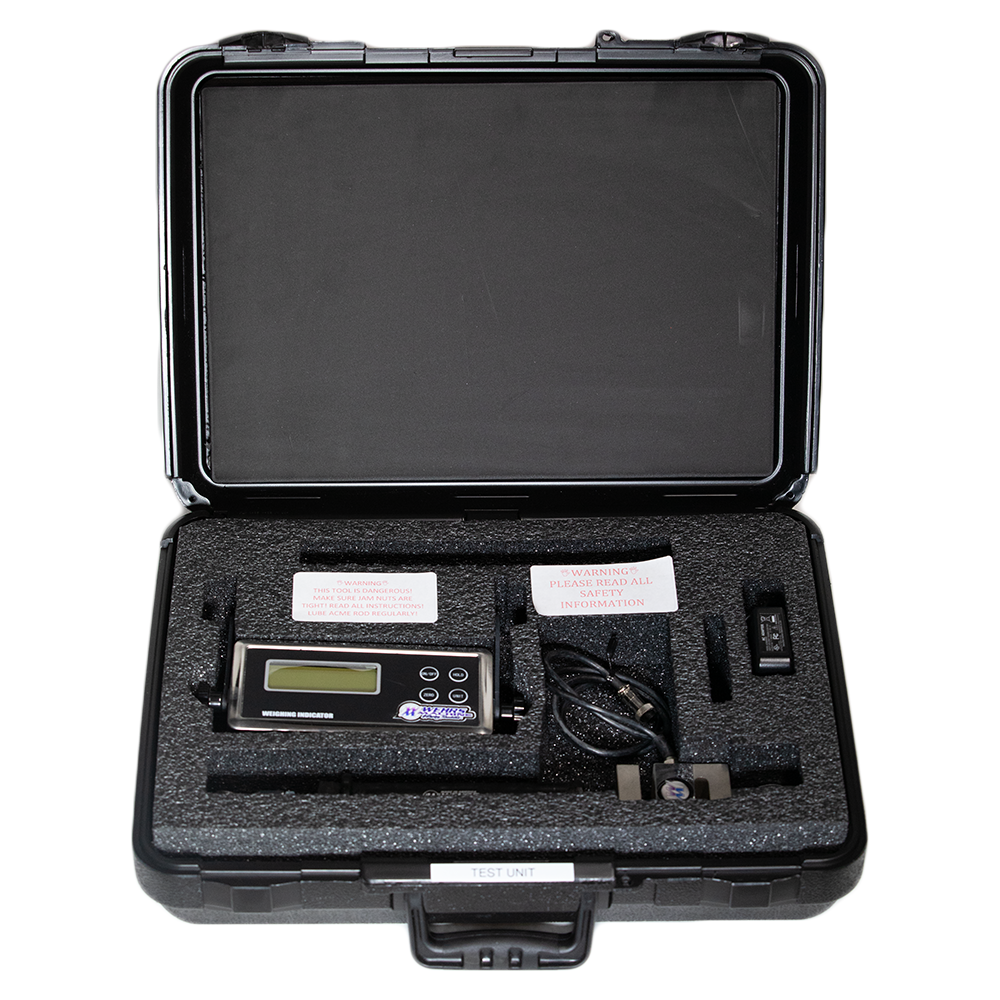 This load stick bolts in where your shock goes on a shock separate suspension. The stick allows you to change springs with ease and accuracy, along with being able to pull the race car down to dynamic attitude to find a suspension bind and to use on jack stands to adjust your compressed loads. This is our ratcheting version. Compressed center to center is 13-1/2″ and extended is 19″. To use in place of 9″ shock, use a WM251-23 slider extension. Available in the accessories tab. Comes with charger for load cell and hard case to store safely.