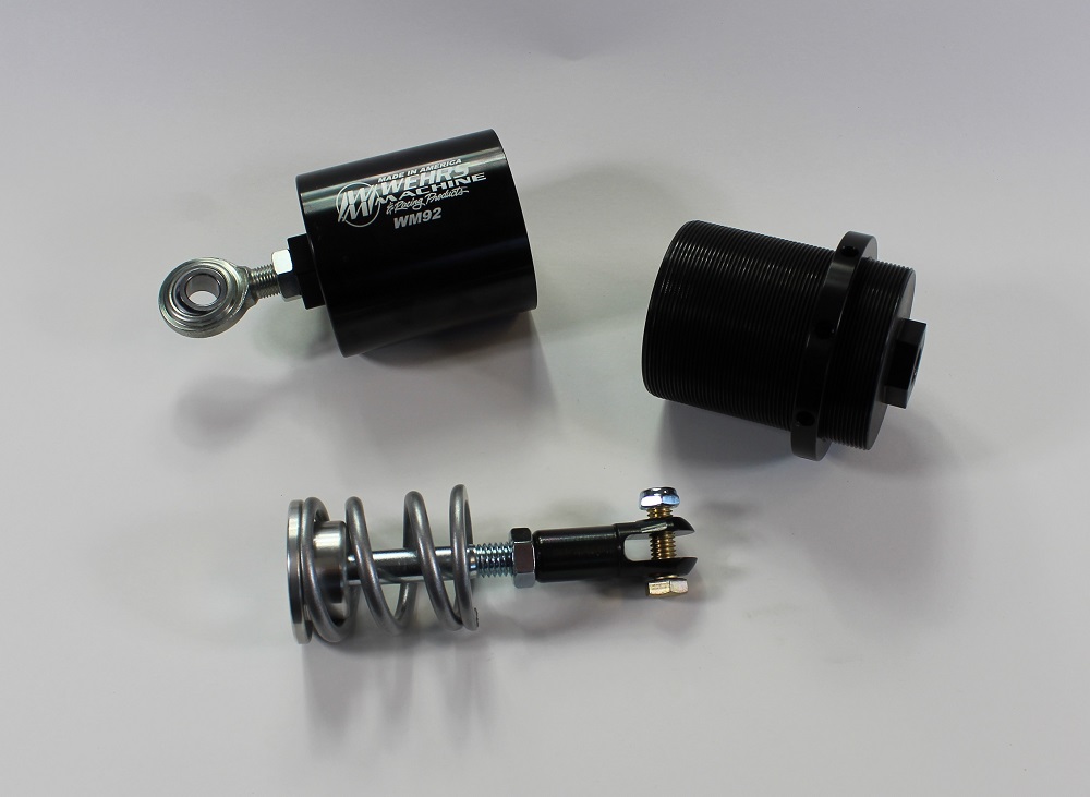Our new limiter cans are a threaded sleeve style to easily adjust chain length with 2″ of overall adjustment. Can will fit up to 3″ tall and 2-1/4″ OD bump stop or spring. This part number is our steel can with a 500# bump spring. Check out our WM427 clamps to mount the can to your chassis.