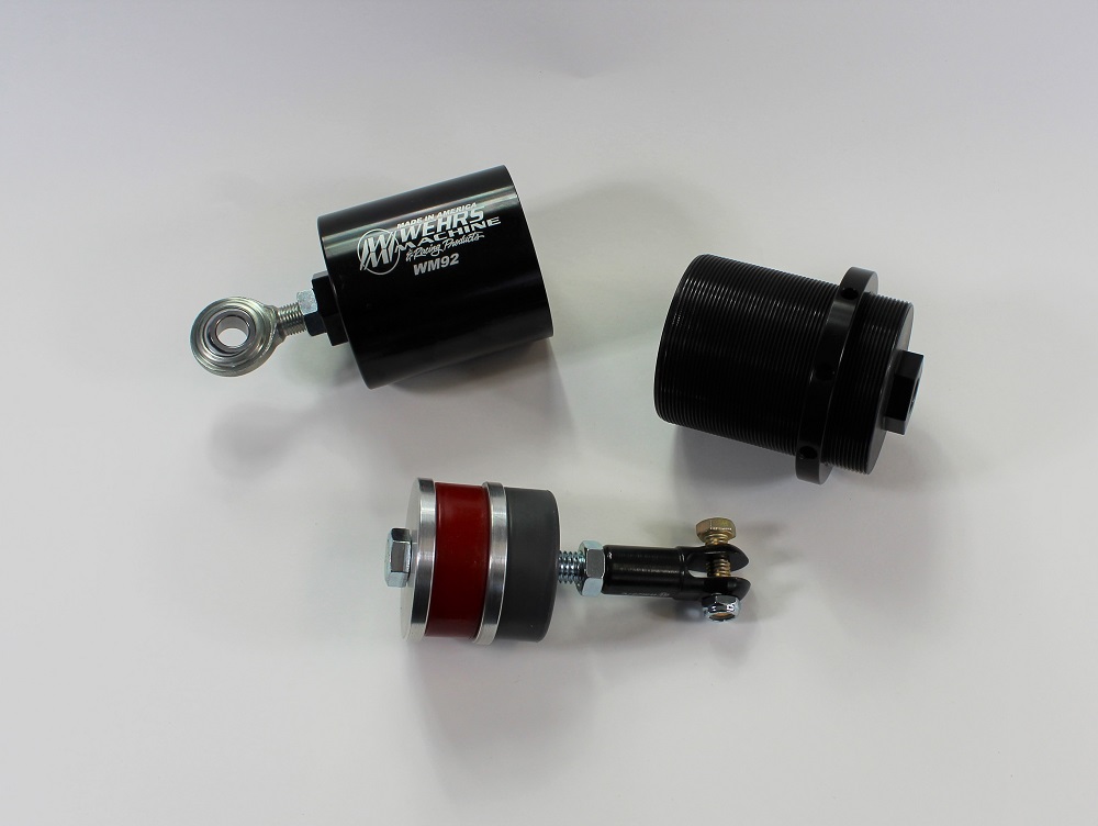 Our new limiter cans are a threaded sleeve style to easily adjust chain length with 2″ of overall adjustment. Can will fit up to 3″ tall and 2-1/4″ OD bump stop or spring. This part number is our steel can with one 50 durometer puck and one 60 durometer puck. Check out our WM427 clamps to mount the can to your chassis.